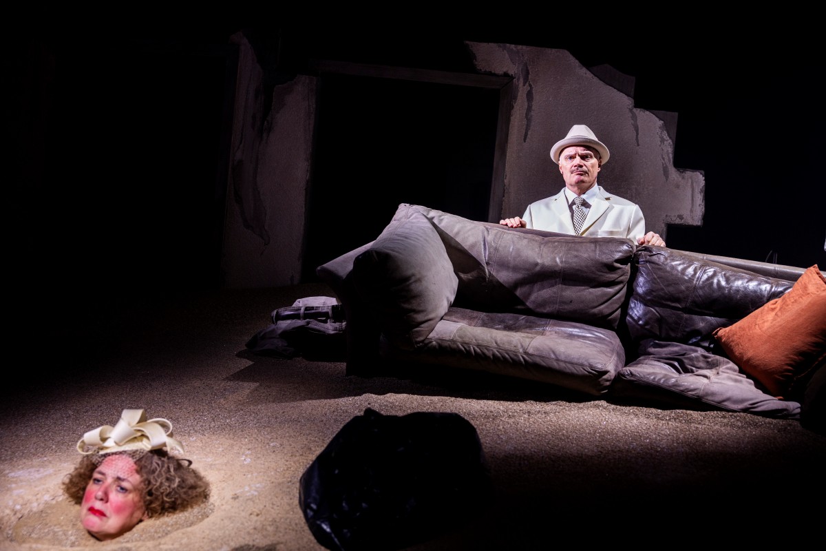Lone Rødbroe spiller Winnie med stoisk munterhed. Hvis vi skræller den dystre scenografi fra, så kunne det være fortidens hjemmegående husmor, der snakkede med nabokonen over hækken. Ja, hver dag ligner den foregående og den næste, men hun har da i hvert fald sin Willie inde på sofaen (det dovne drog). Så hun søger ingen reel forandring.