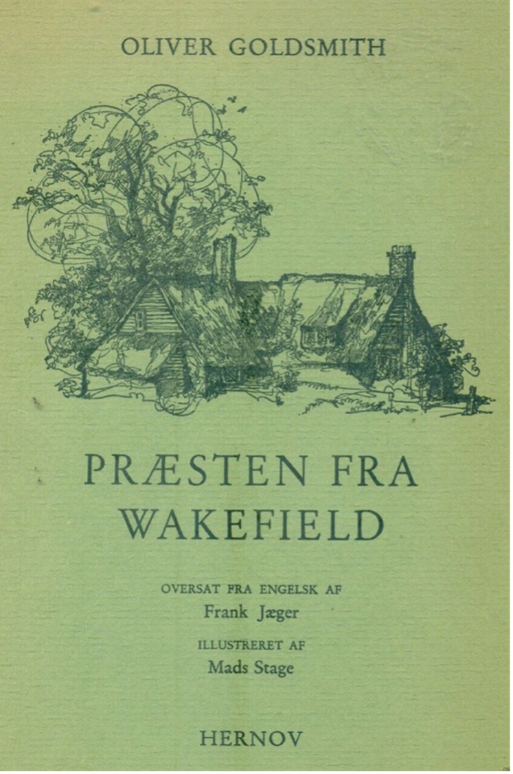 ”Præsten fra Wakefield” stod der på omslaget. En roman skrevet af Oliver Goldsmith, oversat fra engelsk af Frank Jæger og illustreret af Mads Stage. De to sidste har jeg da hørt om, men ellers var jeg på bar bund.