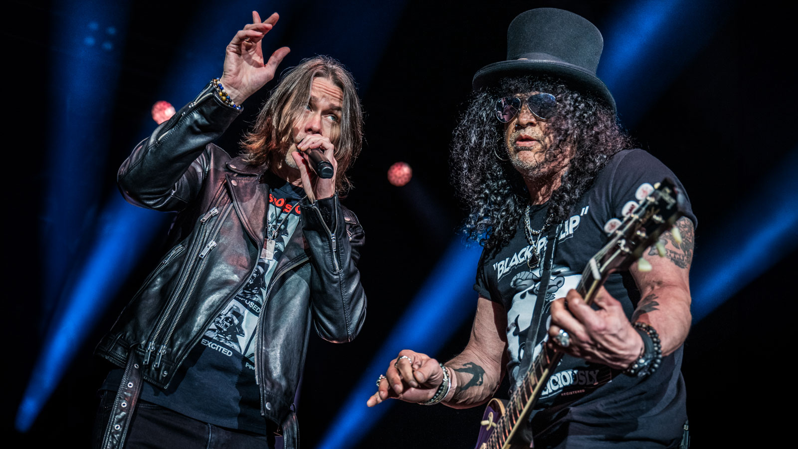 Til det nummer sang bassisten i Slashs band denne fredag aften, og det svingede groovy, skønt og fremragende.