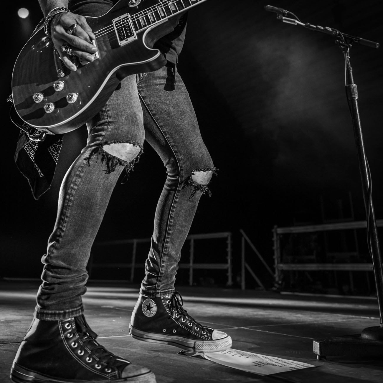 Fredag aften i smukke K.B Hallen var problemet det omvendte: Slash gjorde, hvad han kunne, men hans sanger mangler i den grad den karisma og stemme, som føromtalte Axl Rose har.